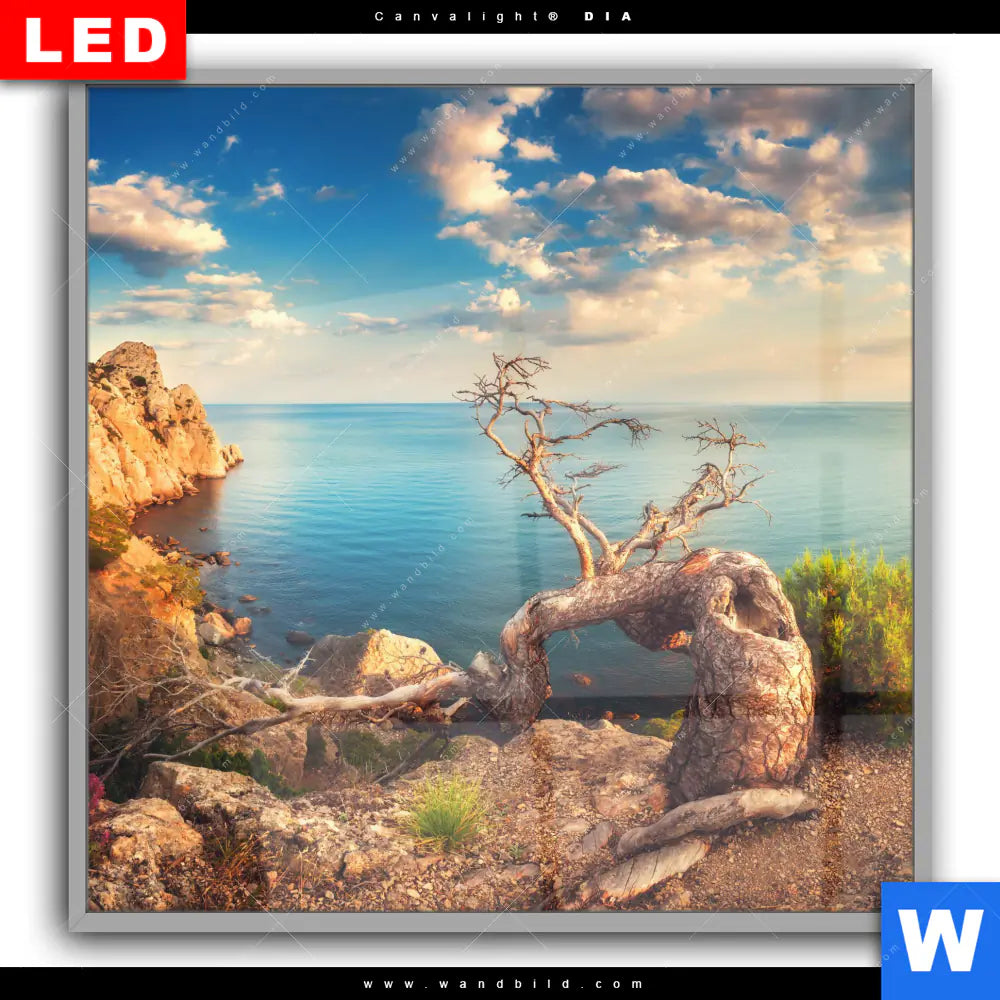 Canvalight® DIA Leuchtbild | Küstenlandschaft mit altem Baum | Quadrat