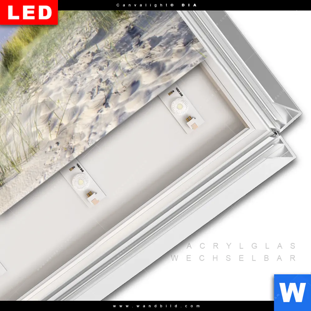 LED-Glasbild mit austauschbarem Acrylglas-Druck (Wechselbild)