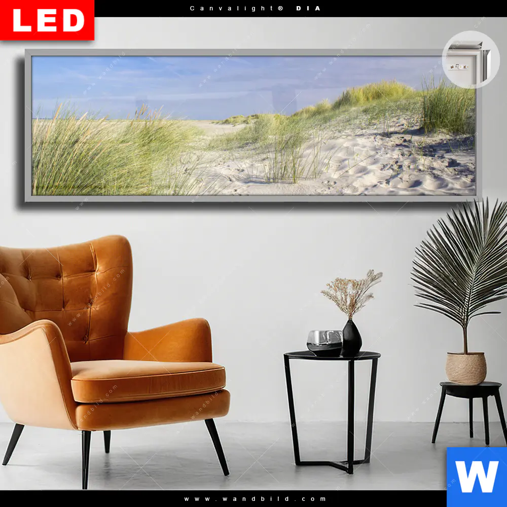 Canvalight® DIA Leuchtbild | Küstenwanderung durch Sanddünen | Panorama