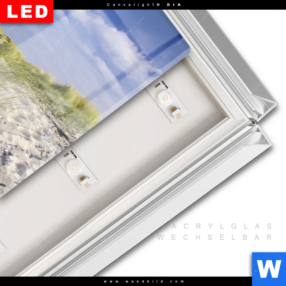 LED-Glasbild mit austauschbarem Acrylglas-Druck (Wechselbild)