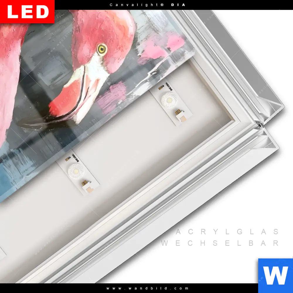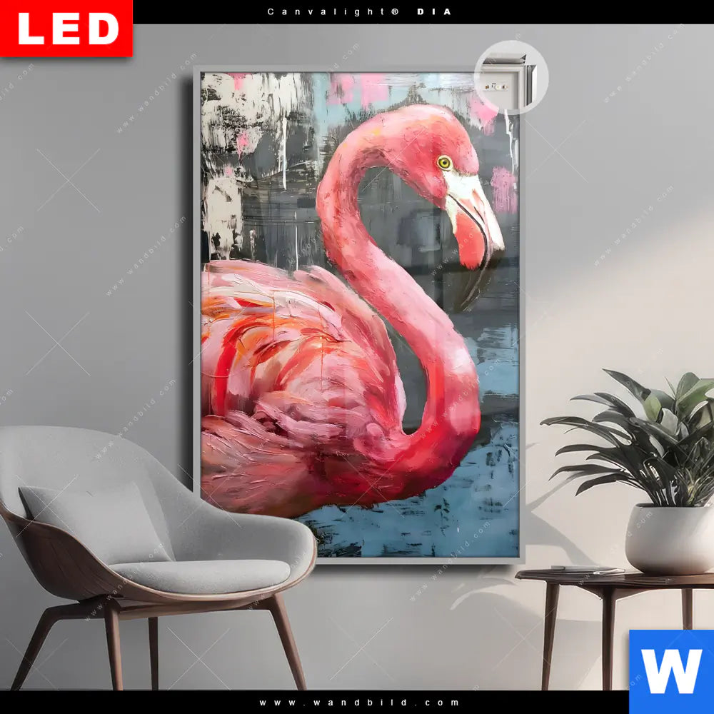 Canvalight® DIA Leuchtbild | Kunstvoller Flamingo | Hochformat