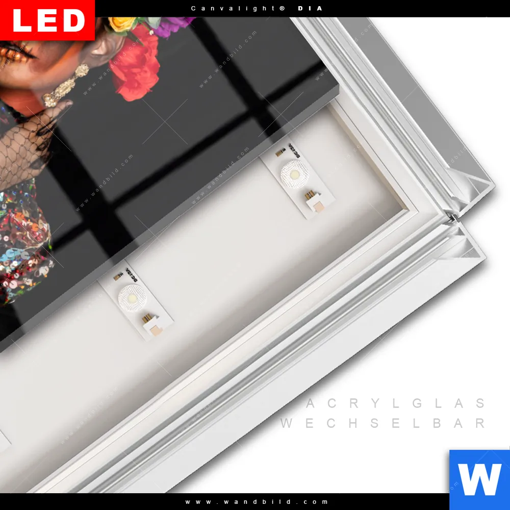 LED-Glasbild mit austauschbarem Acrylglas-Druck (Wechselbild)