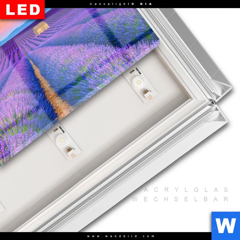 LED-Glasbild mit austauschbarem Acrylglas-Druck (Wechselbild)