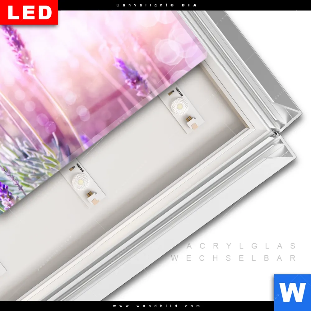 LED-Glasbild mit austauschbarem Acrylglas-Druck (Wechselbild)