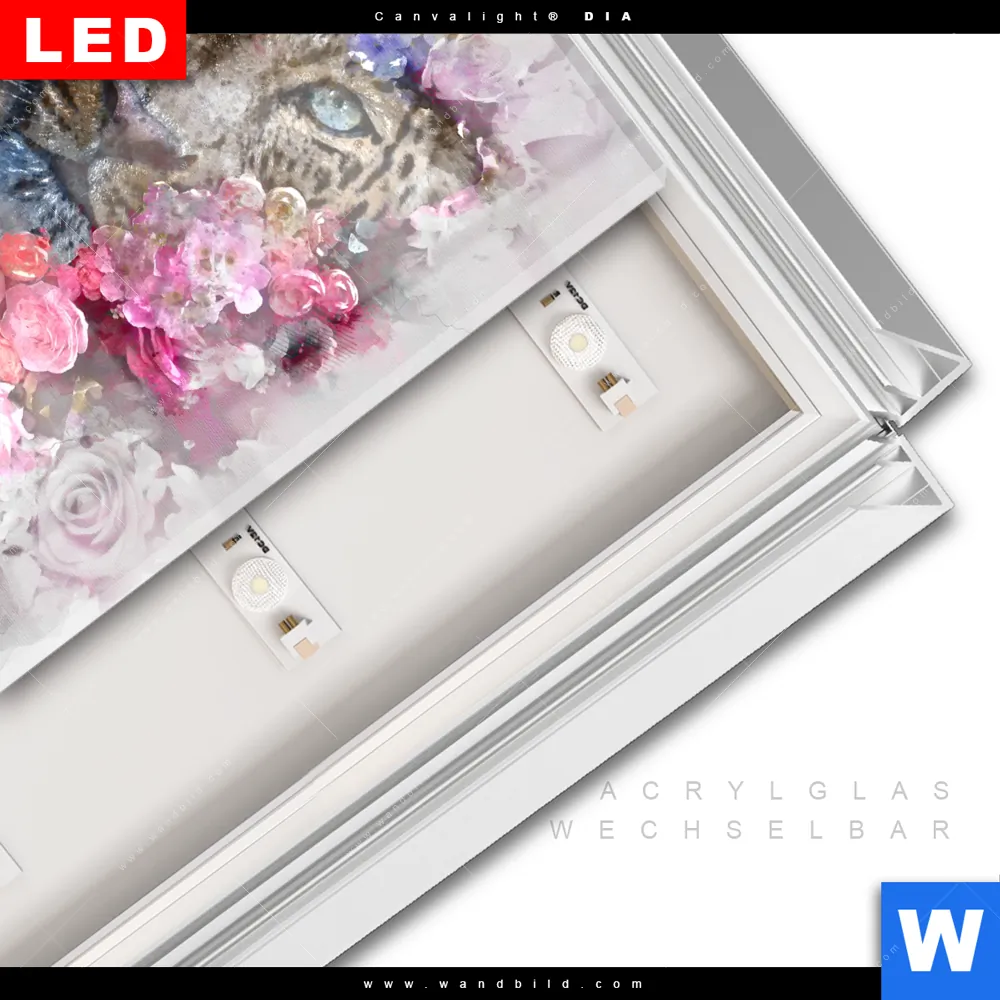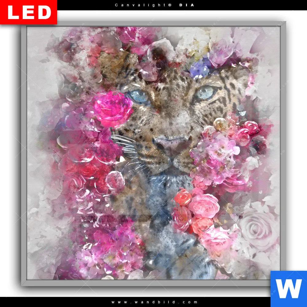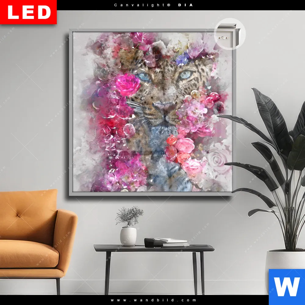 Canvalight® DIA Leuchtbild | Leopard & Blumen | Quadrat