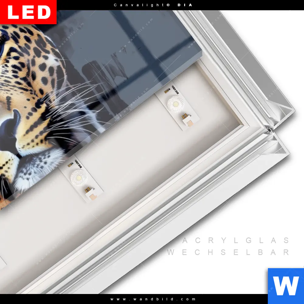Leuchtbild Acrylglas Canvalight® DIA | Leopard - Eleganz trifft Farbe | Panorama
