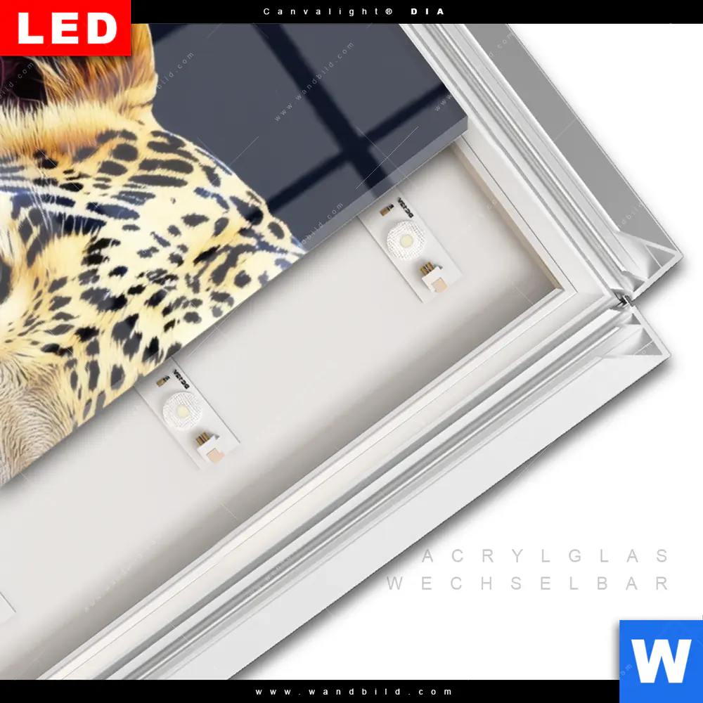 Leuchtbild Acrylglas Canvalight® DIA | Leopard - Eleganz trifft Farbe | Schmal