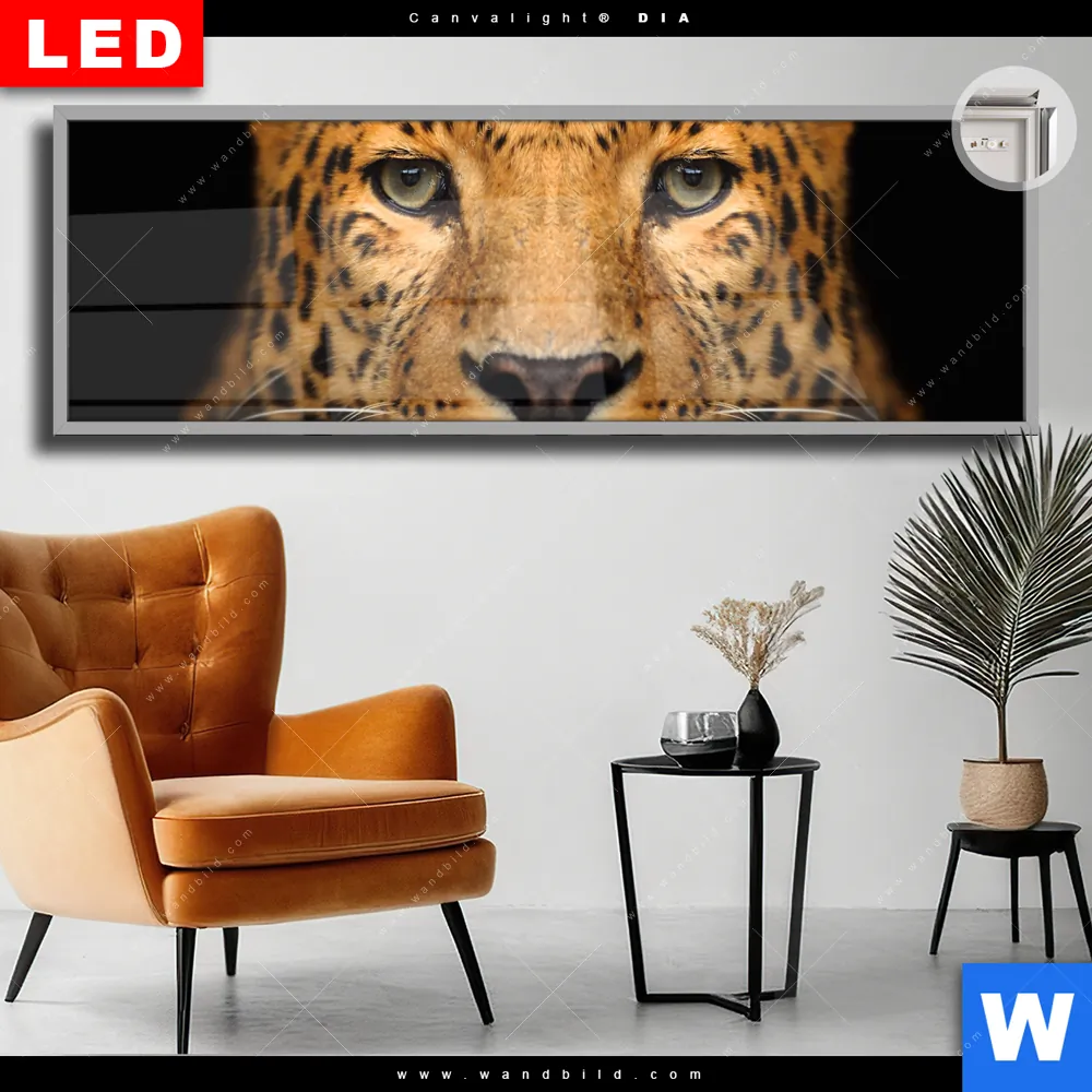 Canvalight® DIA Leuchtbild | Leopard im Wasser | Panorama