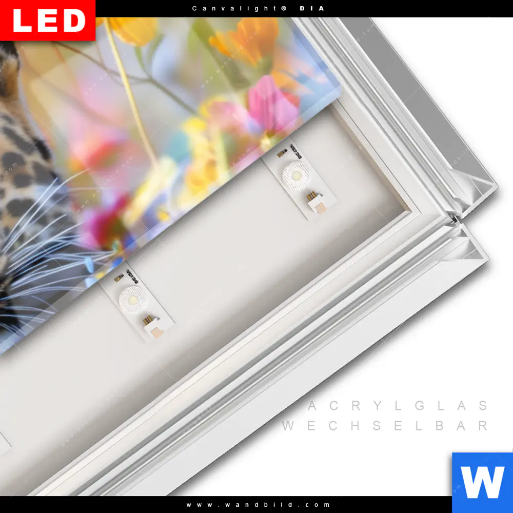 LED-Glasbild mit austauschbarem Acrylglas-Druck (Wechselbild)