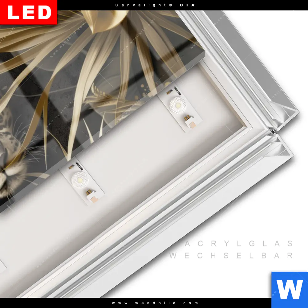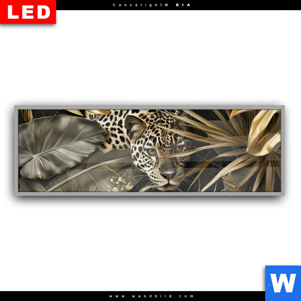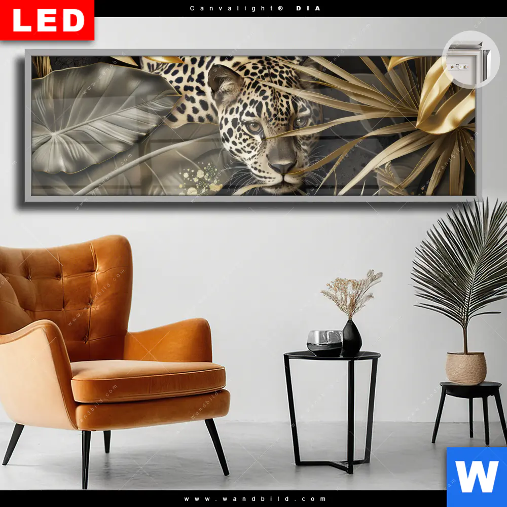 Canvalight® DIA Leuchtbild | Leopard in goldener Tarnung | Panorama