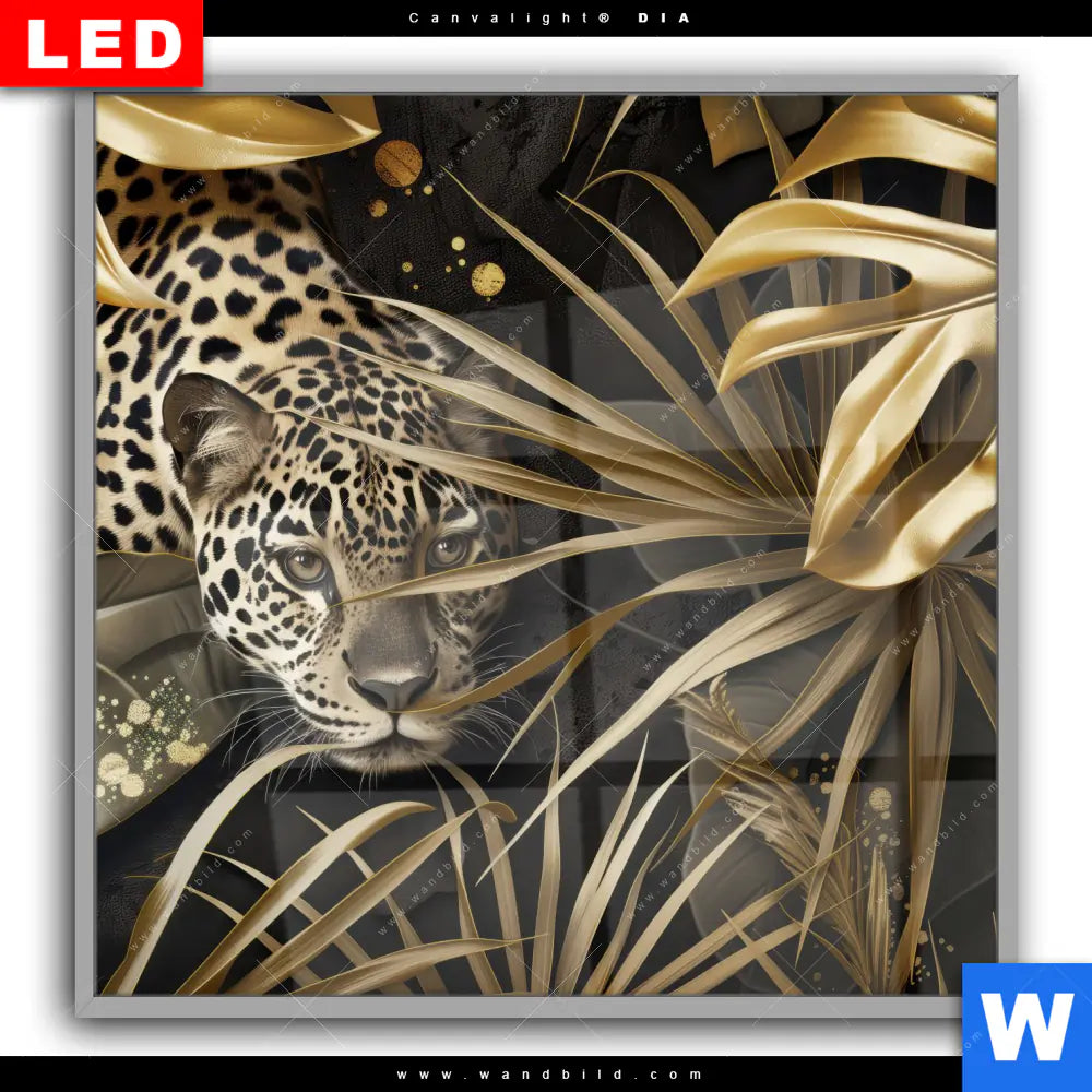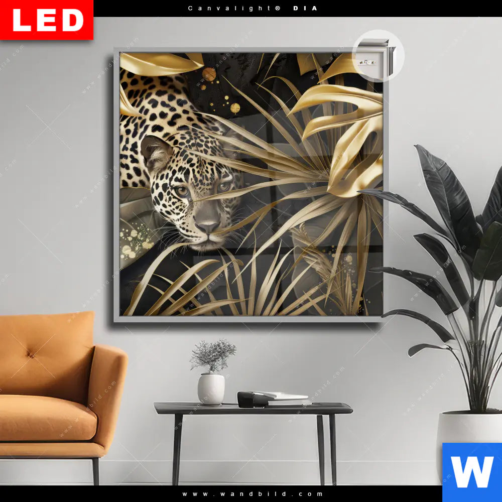 Canvalight® DIA Leuchtbild | Leopard in goldener Tarnung | Quadrat
