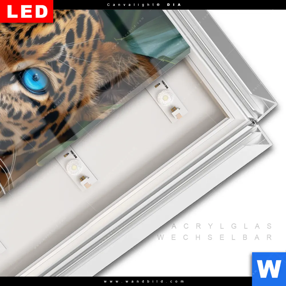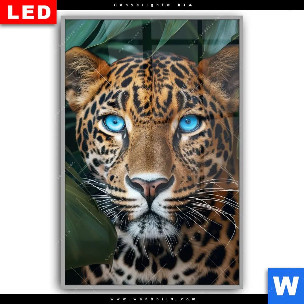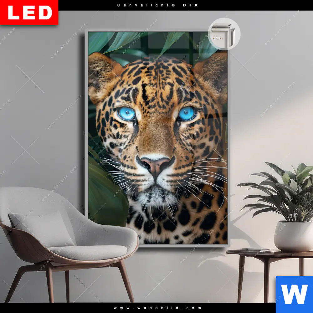Canvalight® DIA Leuchtbild | Leopard mit blauen Augen | Hochformat