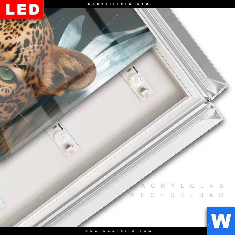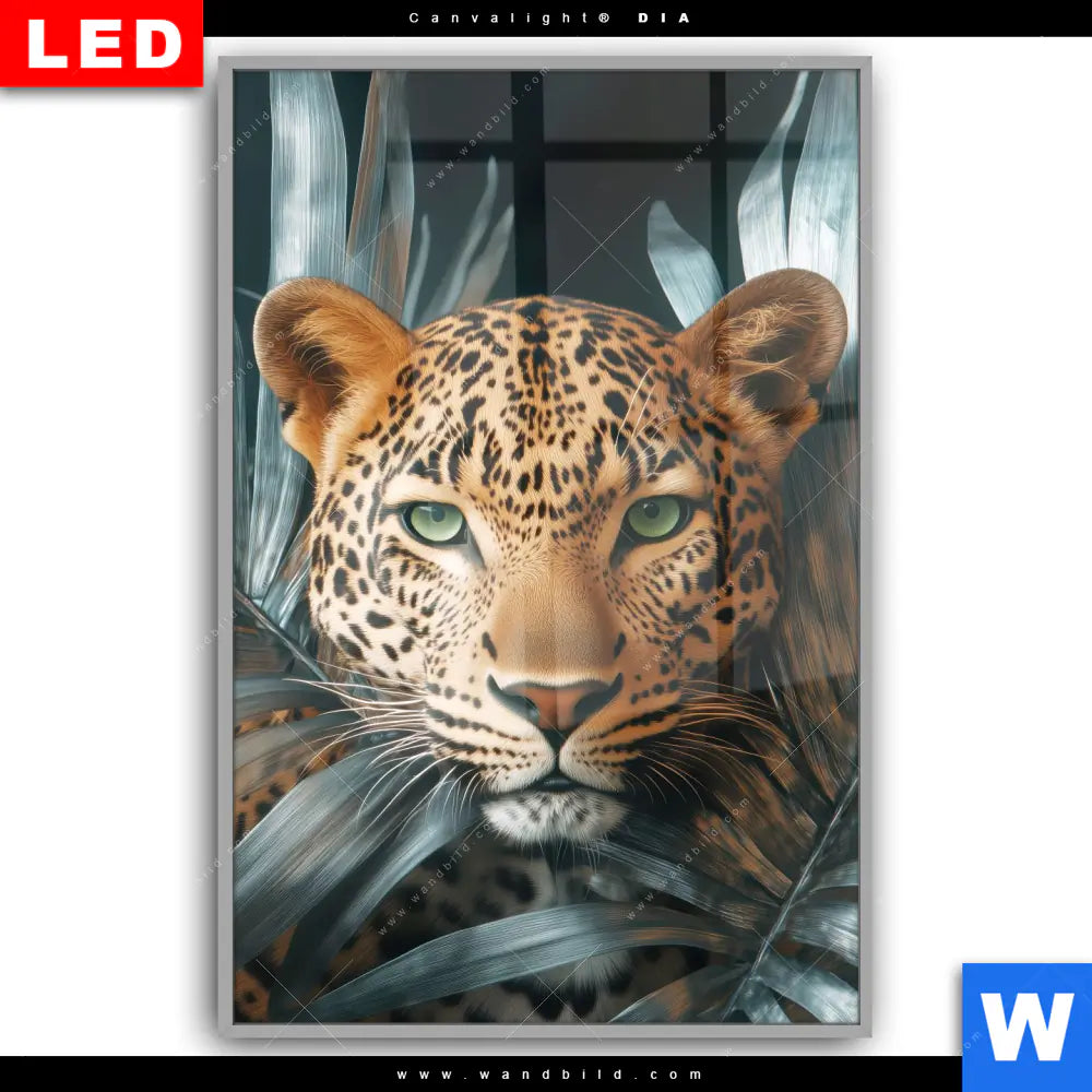 Canvalight® DIA Leuchtbild | Leopard zwischen Blättern | Hochformat