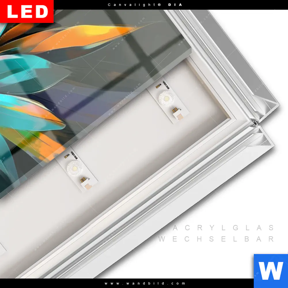 LED-Glasbild mit austauschbarem Acrylglas-Druck (Wechselbild)