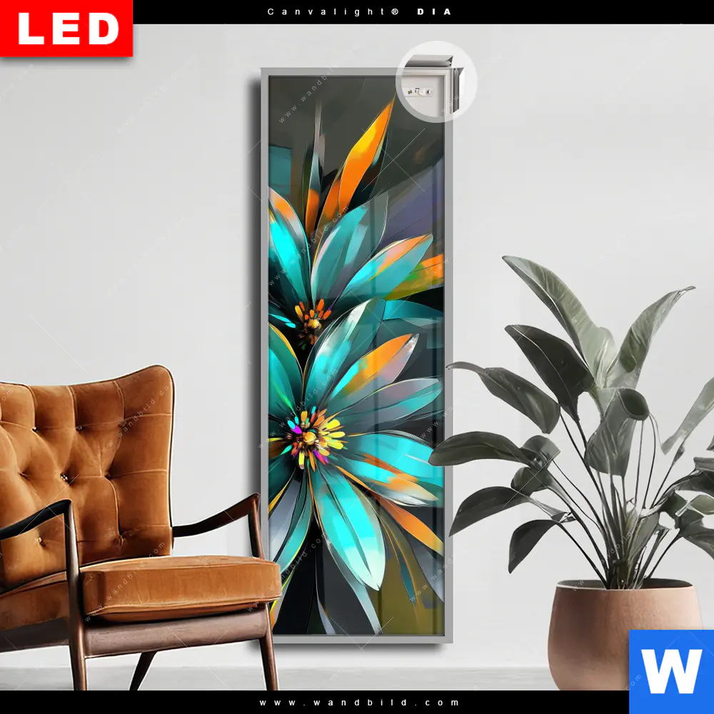 Canvalight® DIA Leuchtbild | Leuchtende Fantasieblüten | Schmal