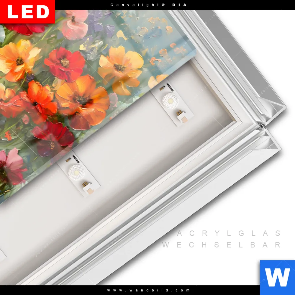 Canvalight® DIA Leuchtbild | Leuchtende Frühlingsblumen | Quadrat