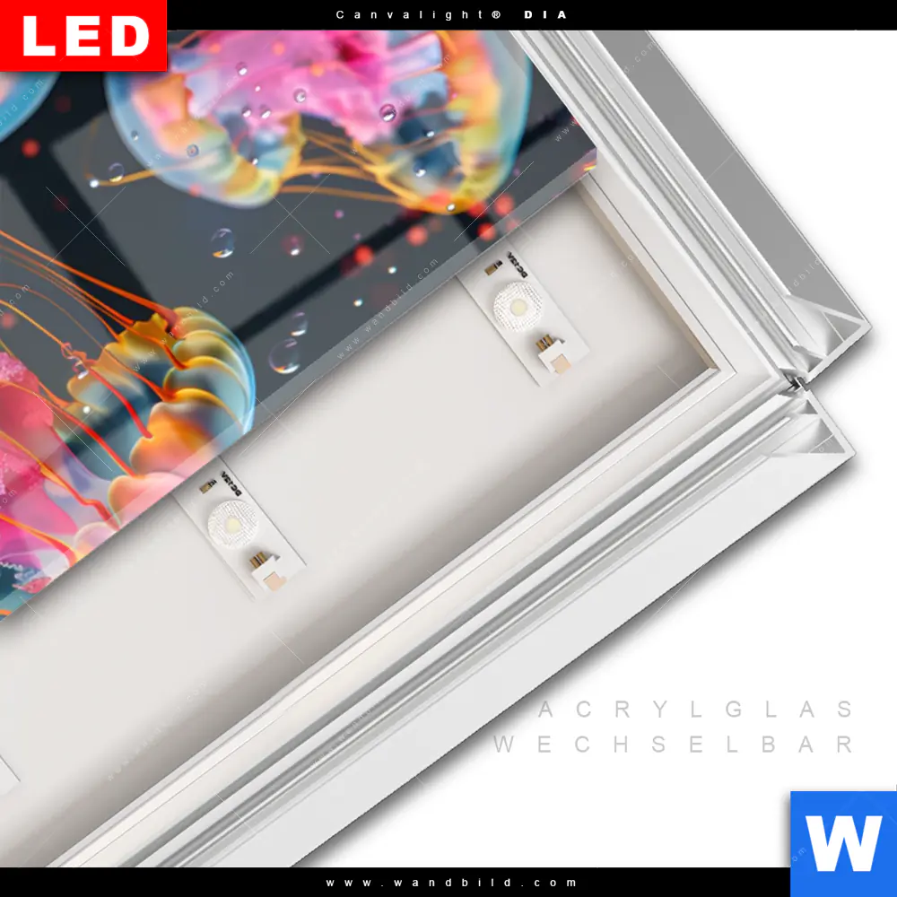 LED-Glasbild mit austauschbarem Acrylglas-Druck (Wechselbild)