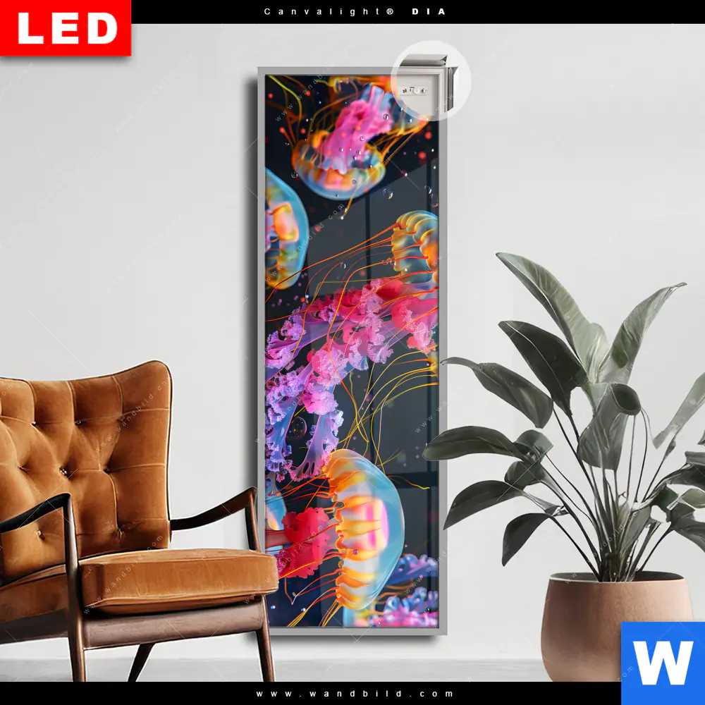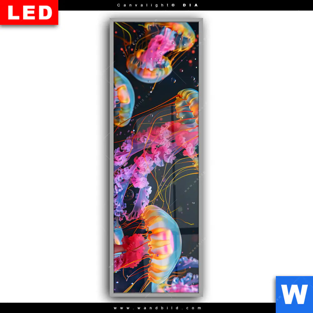 Canvalight® DIA Leuchtbild | Leuchtende Quallen unter Wasser | Schmal