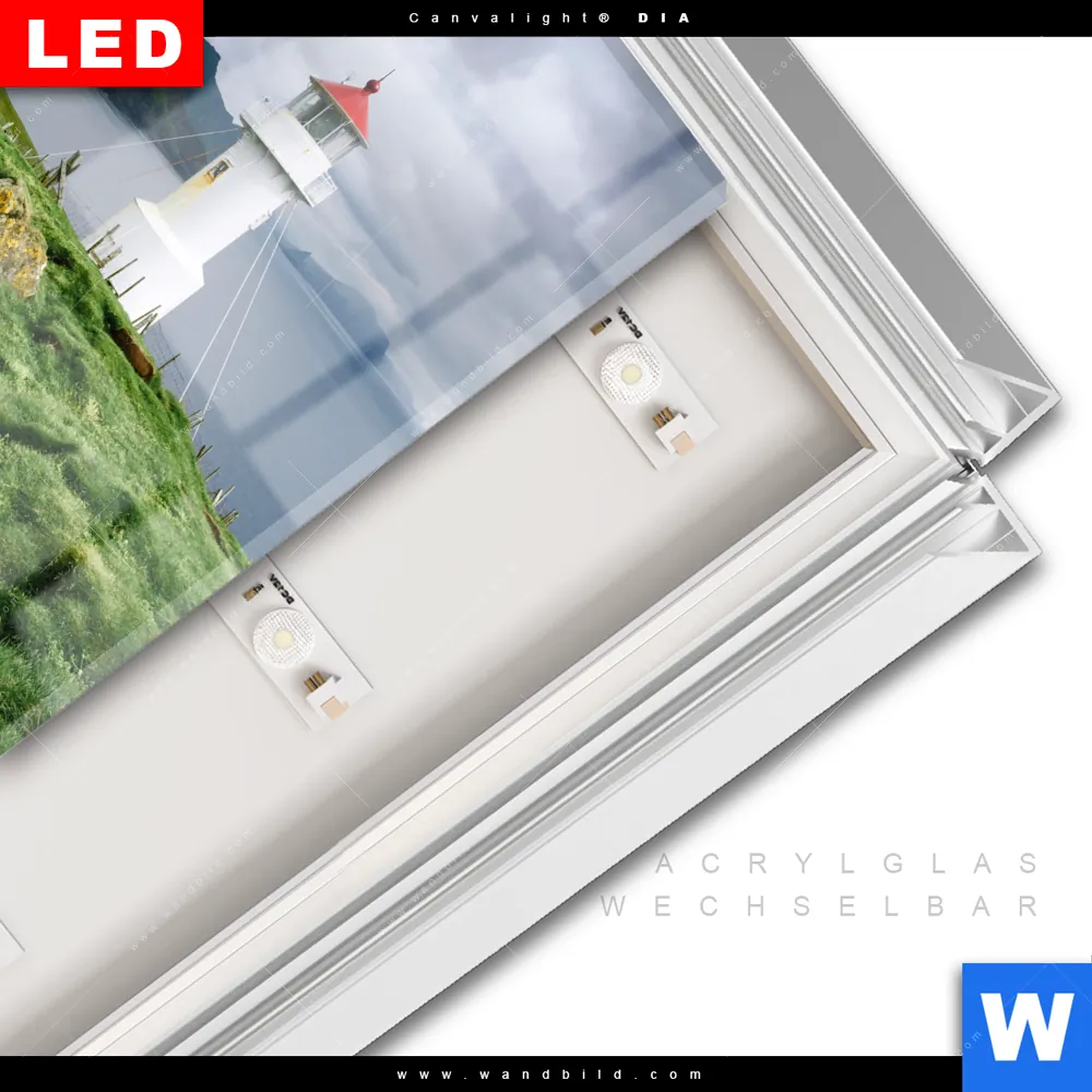 LED-Glasbild mit austauschbarem Acrylglas-Druck (Wechselbild)