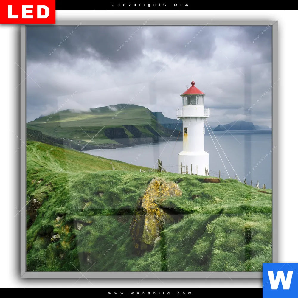 Canvalight® DIA Leuchtbild | Leuchtturm auf Insel | Quadrat