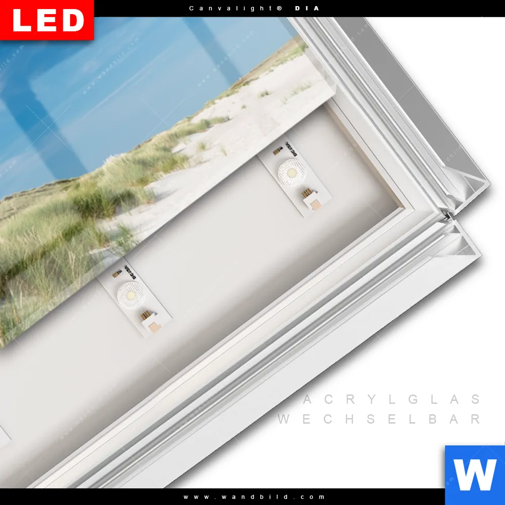 LED-Glasbild mit austauschbarem Acrylglas-Druck (Wechselbild)