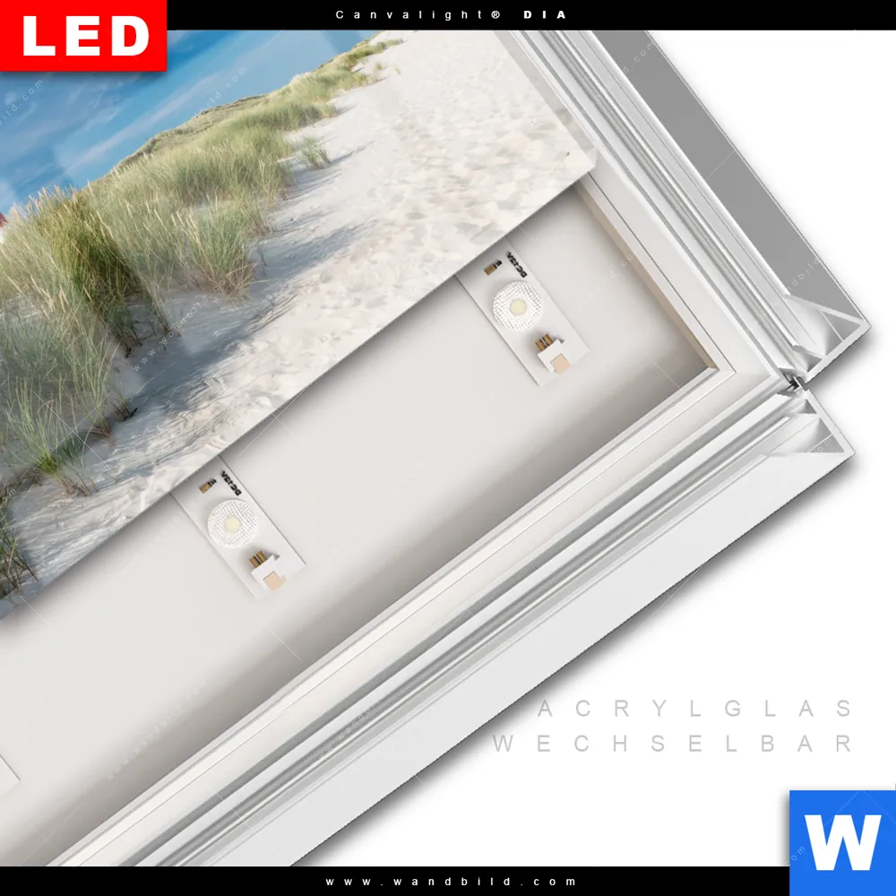 LED-Glasbild mit austauschbarem Acrylglas-Druck (Wechselbild)