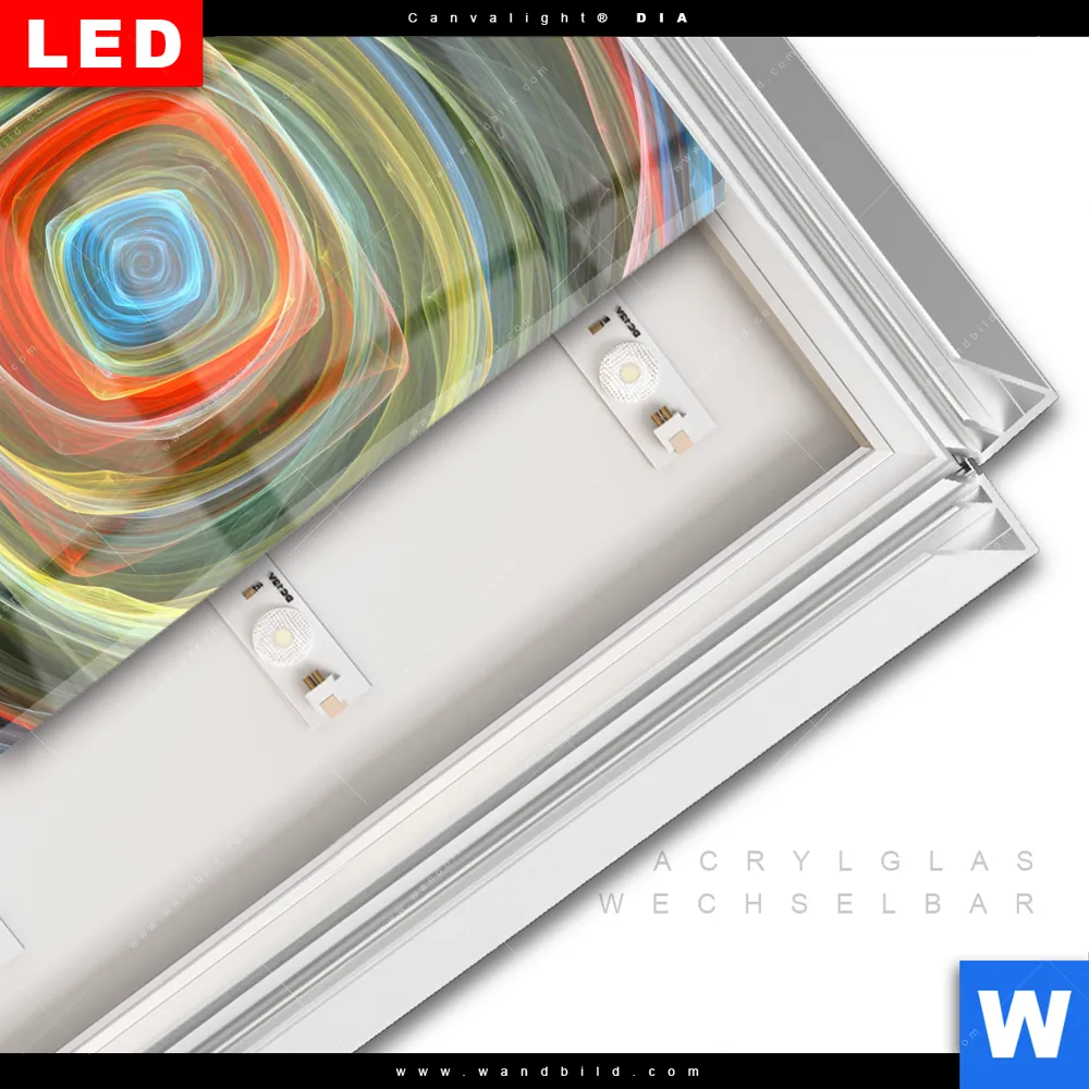 LED-Glasbild mit austauschbarem Acrylglas-Druck (Wechselbild)