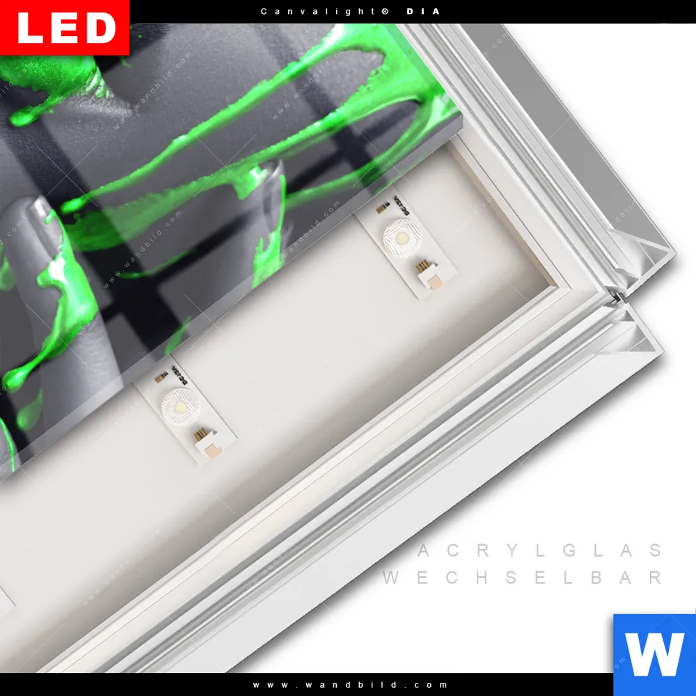 LED-Glasbild mit austauschbarem Acrylglas-Druck (Wechselbild)