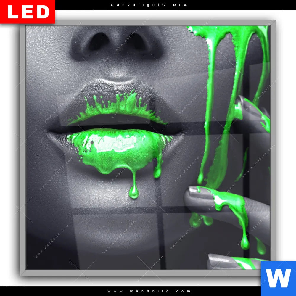 Canvalight® DIA Leuchtbild | Lippen Silber & Grün | Quadrat
