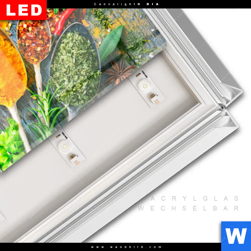 LED-Glasbild mit austauschbarem Acrylglas-Druck (Wechselbild)