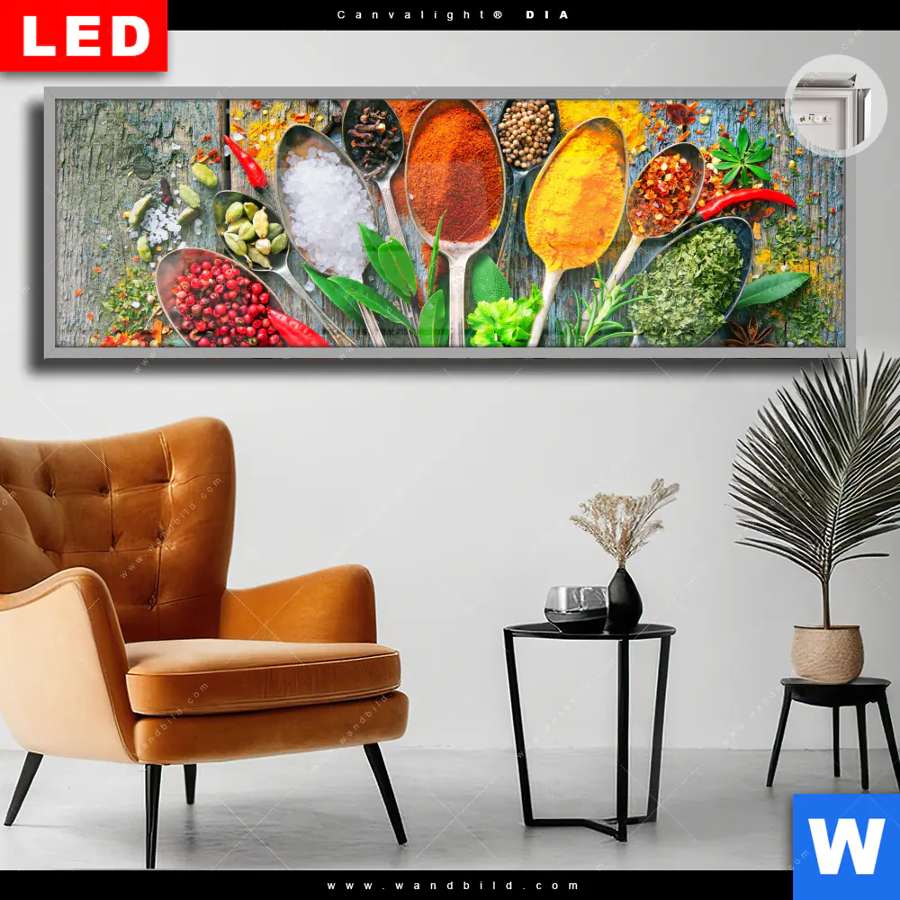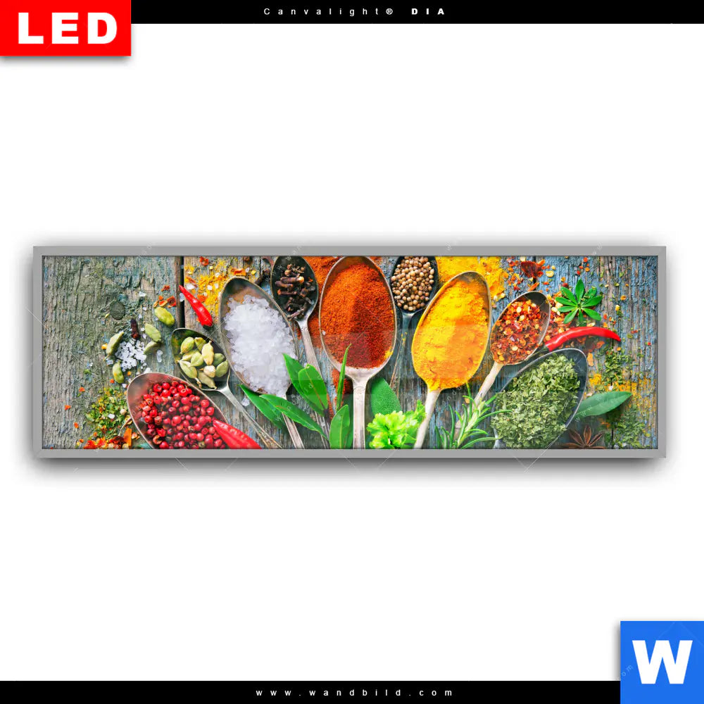 Canvalight® DIA Leuchtbild | Löffel mit Kräutern und Gewürzen | Panorama