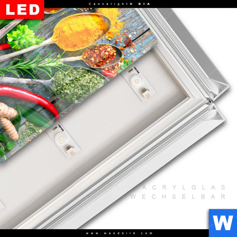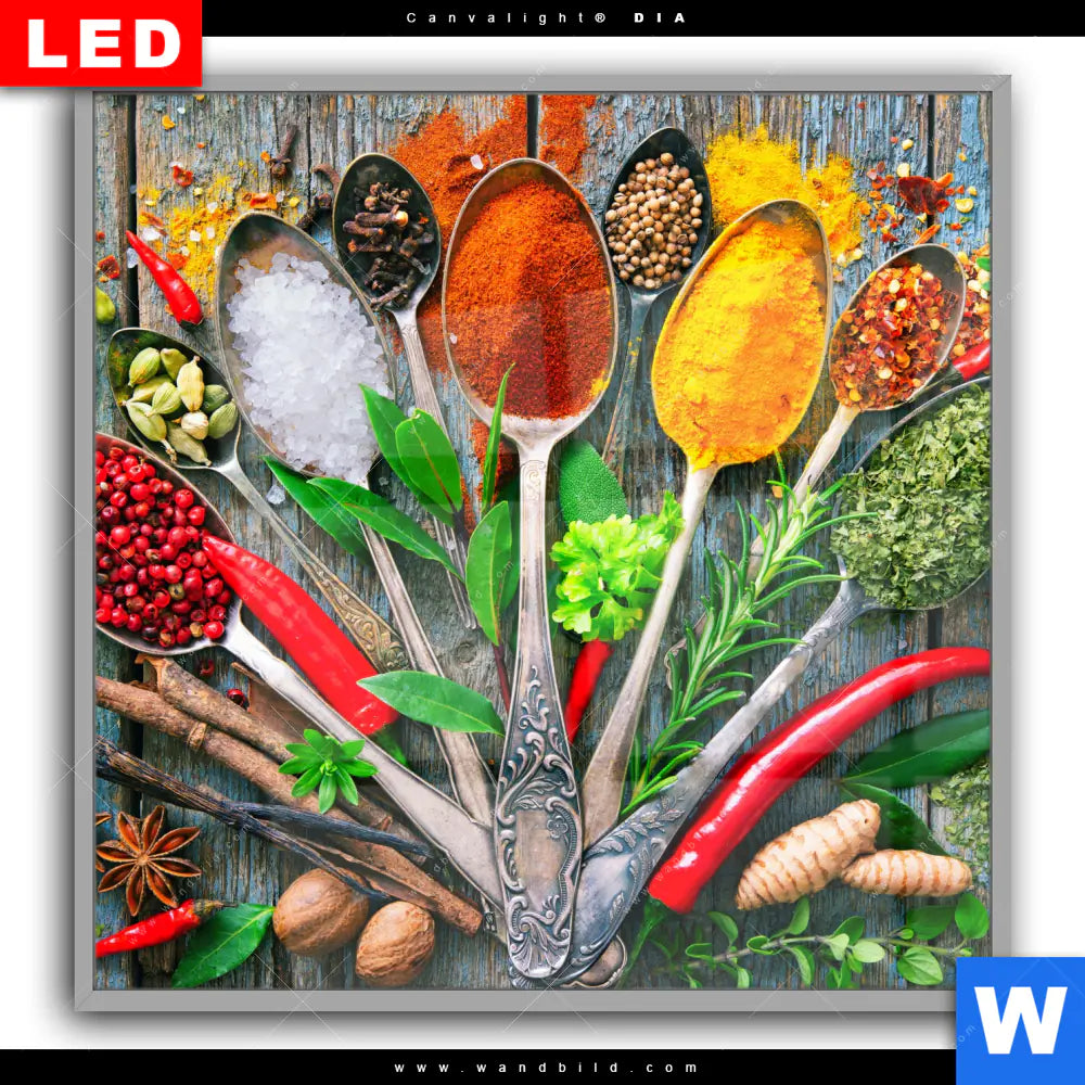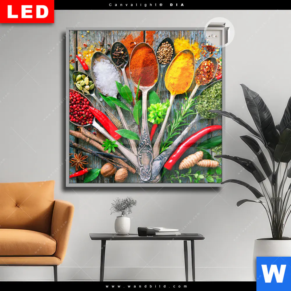 Canvalight® DIA Leuchtbild | Löffel mit Kräutern und Gewürzen | Quadrat