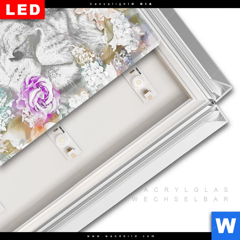 Canvalight® DIA Leuchtbild | Löwe & Blumen | Querformat