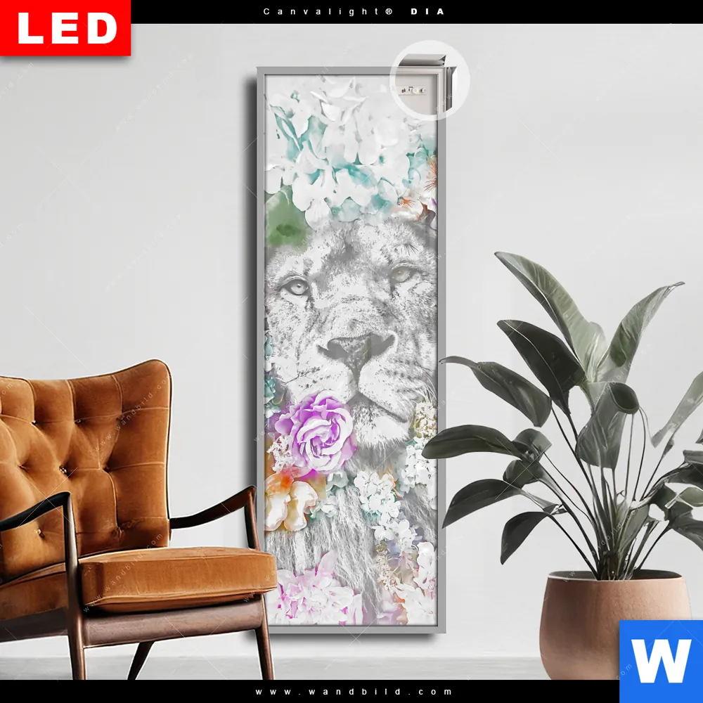 Canvalight® DIA Leuchtbild | Löwe & Blumen | Schmal
