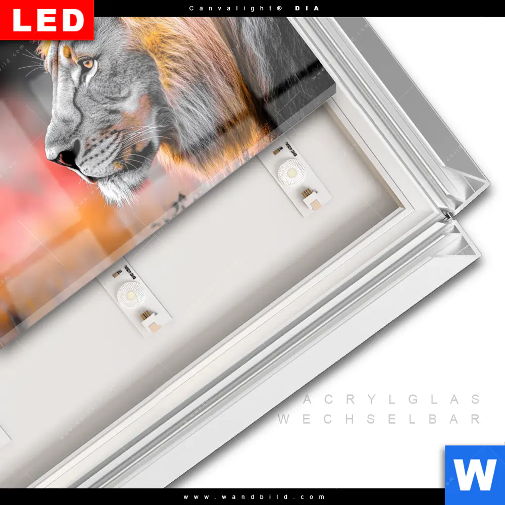 Canvalight® DIA Leuchtbild | Löwe - Savannenzauber in Afrika | Querformat