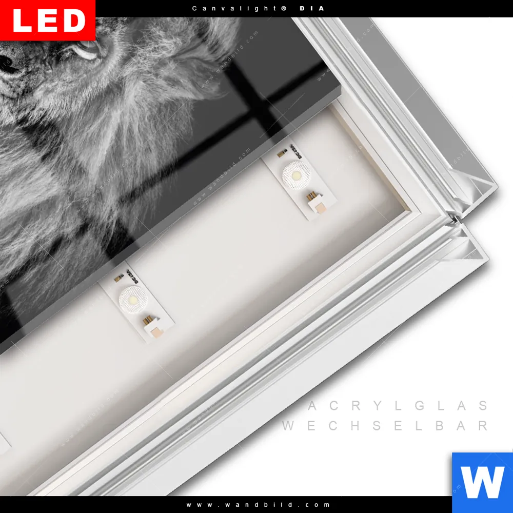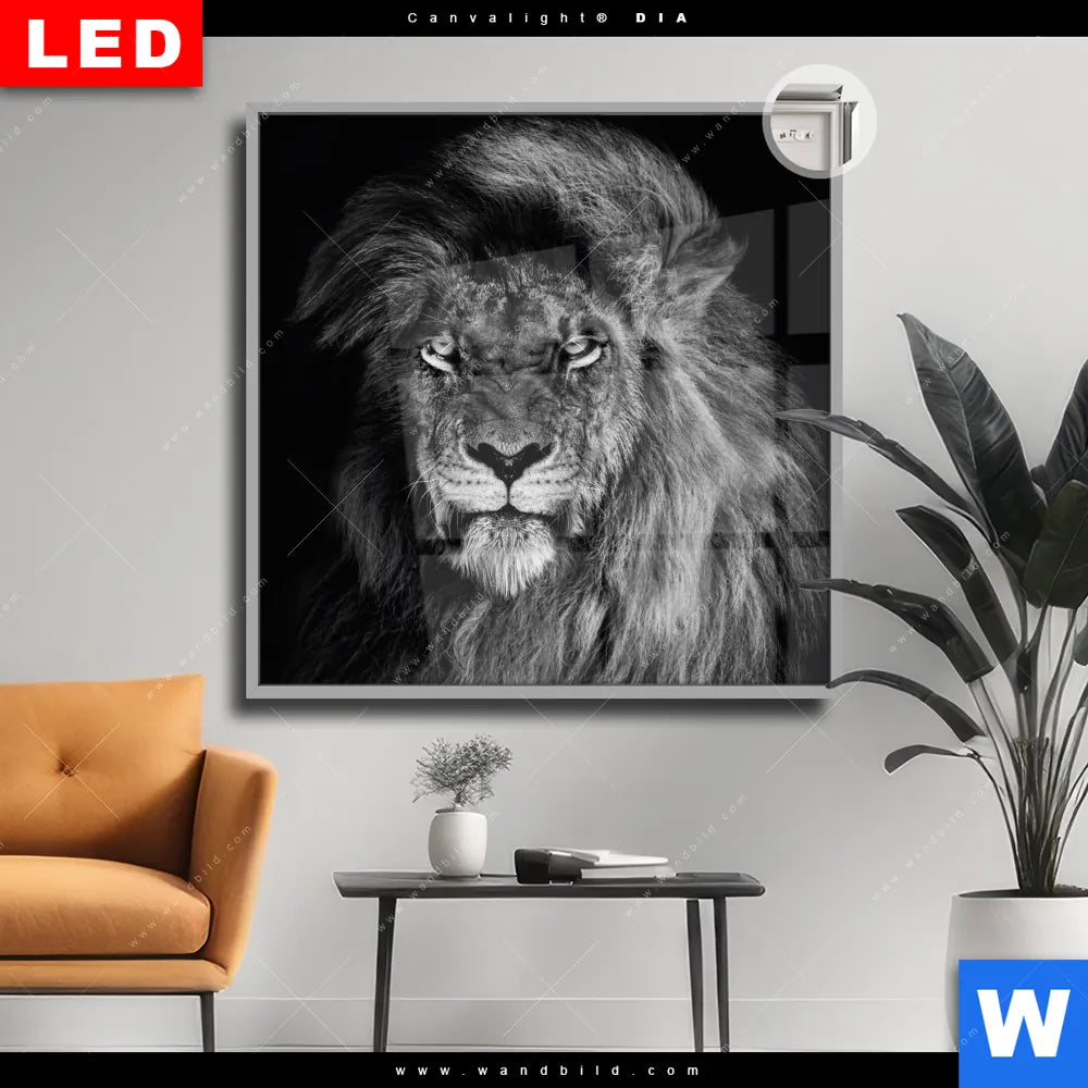 Canvalight® DIA Leuchtbild | Löwe Schwarzweiß | Quadrat