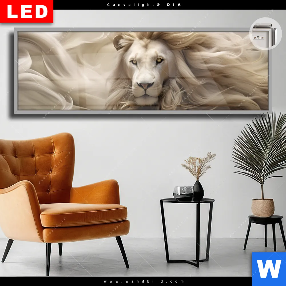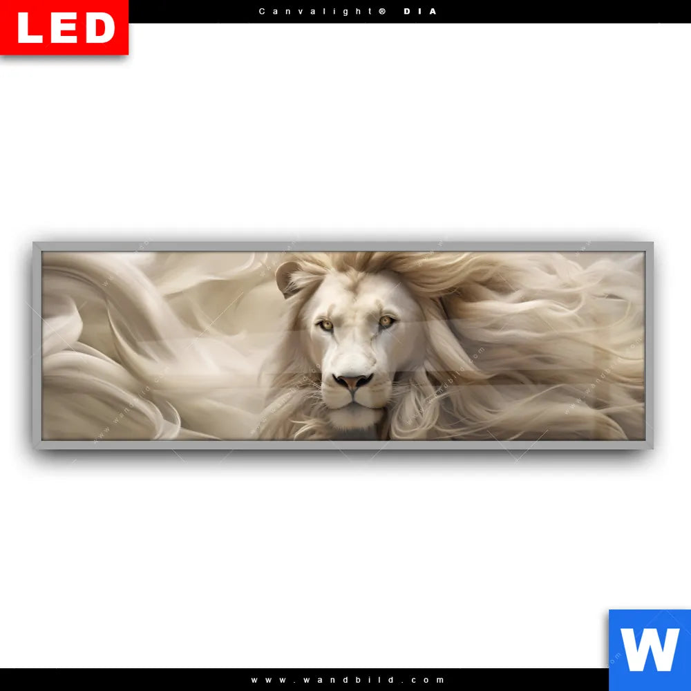 Canvalight® DIA Leuchtbild | Löwenkopf mit weißer Mähne | Panorama