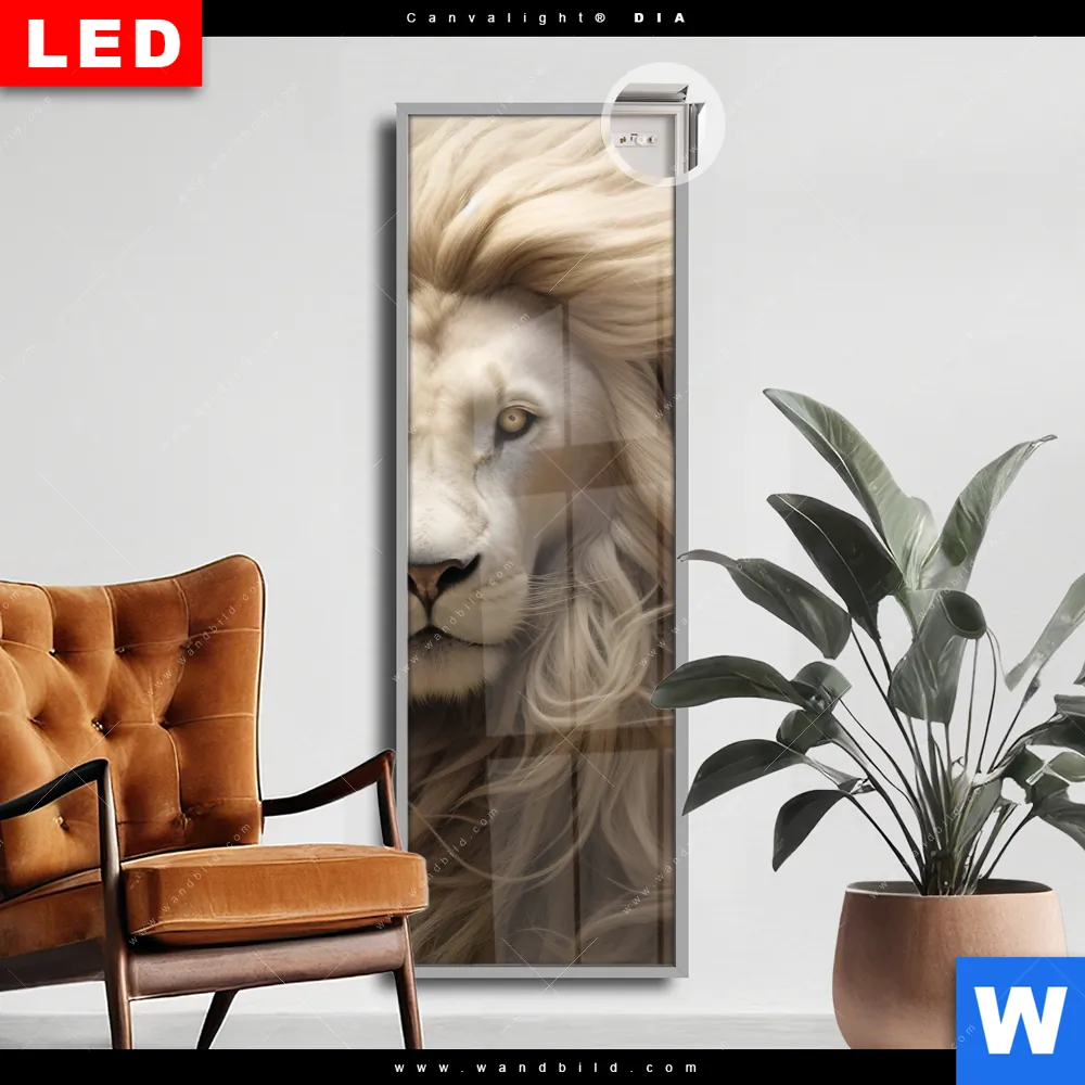 Canvalight® DIA Leuchtbild | Löwenkopf mit weißer Mähne | Schmal