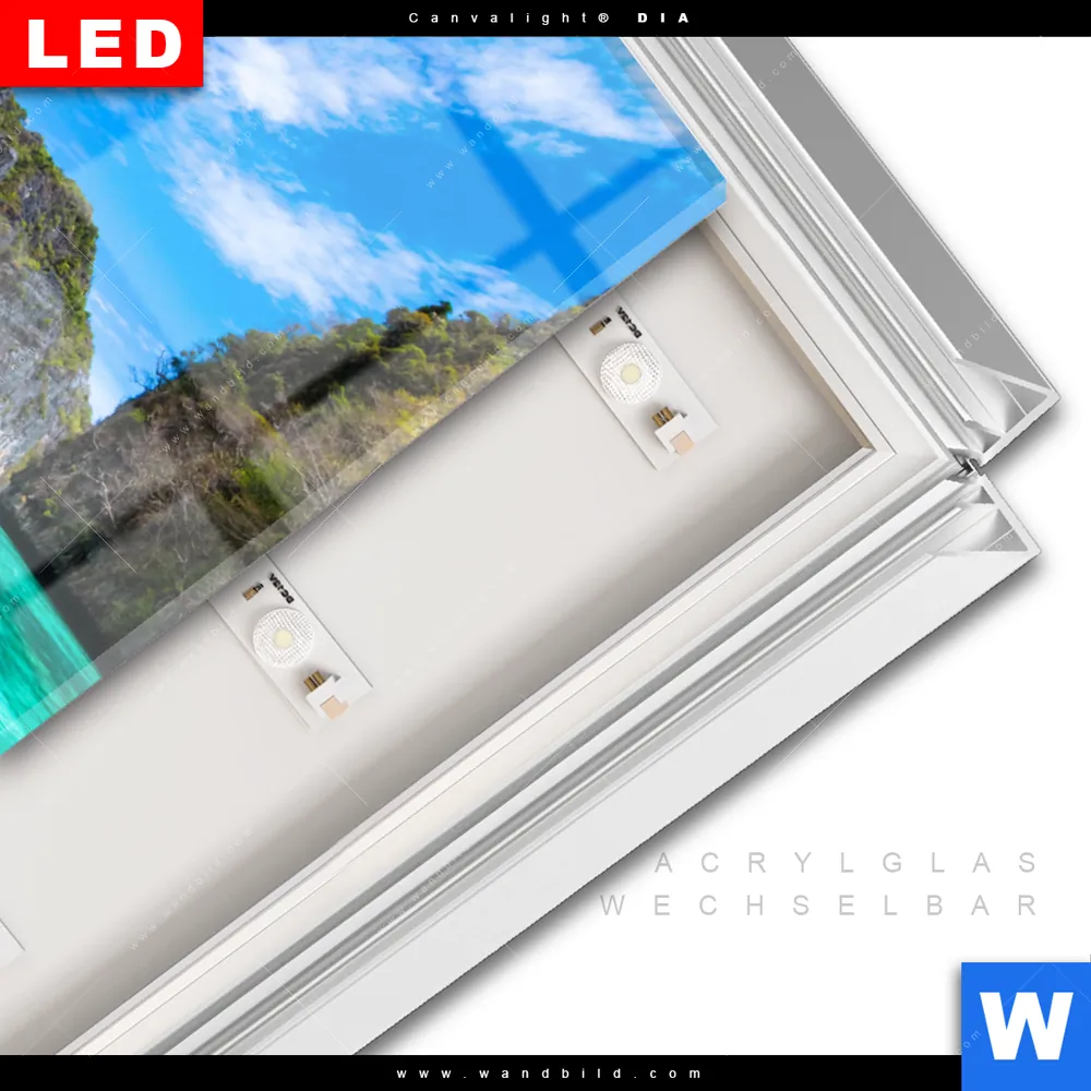 LED-Glasbild mit austauschbarem Acrylglas-Druck (Wechselbild)
