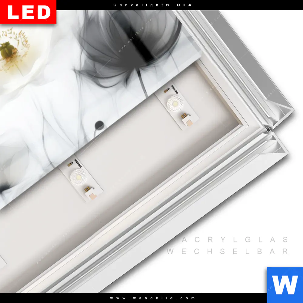 LED-Glasbild mit austauschbarem Acrylglas-Druck (Wechselbild)