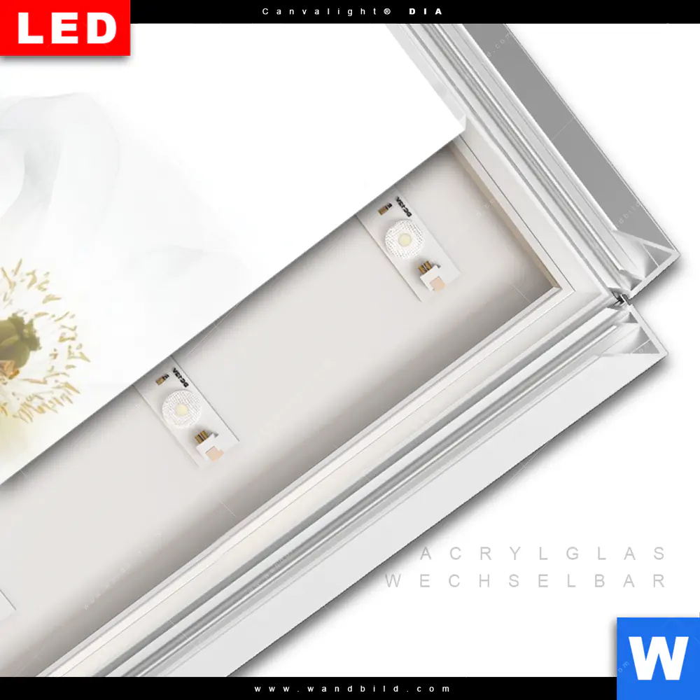 LED-Glasbild mit austauschbarem Acrylglas-Druck (Wechselbild)
