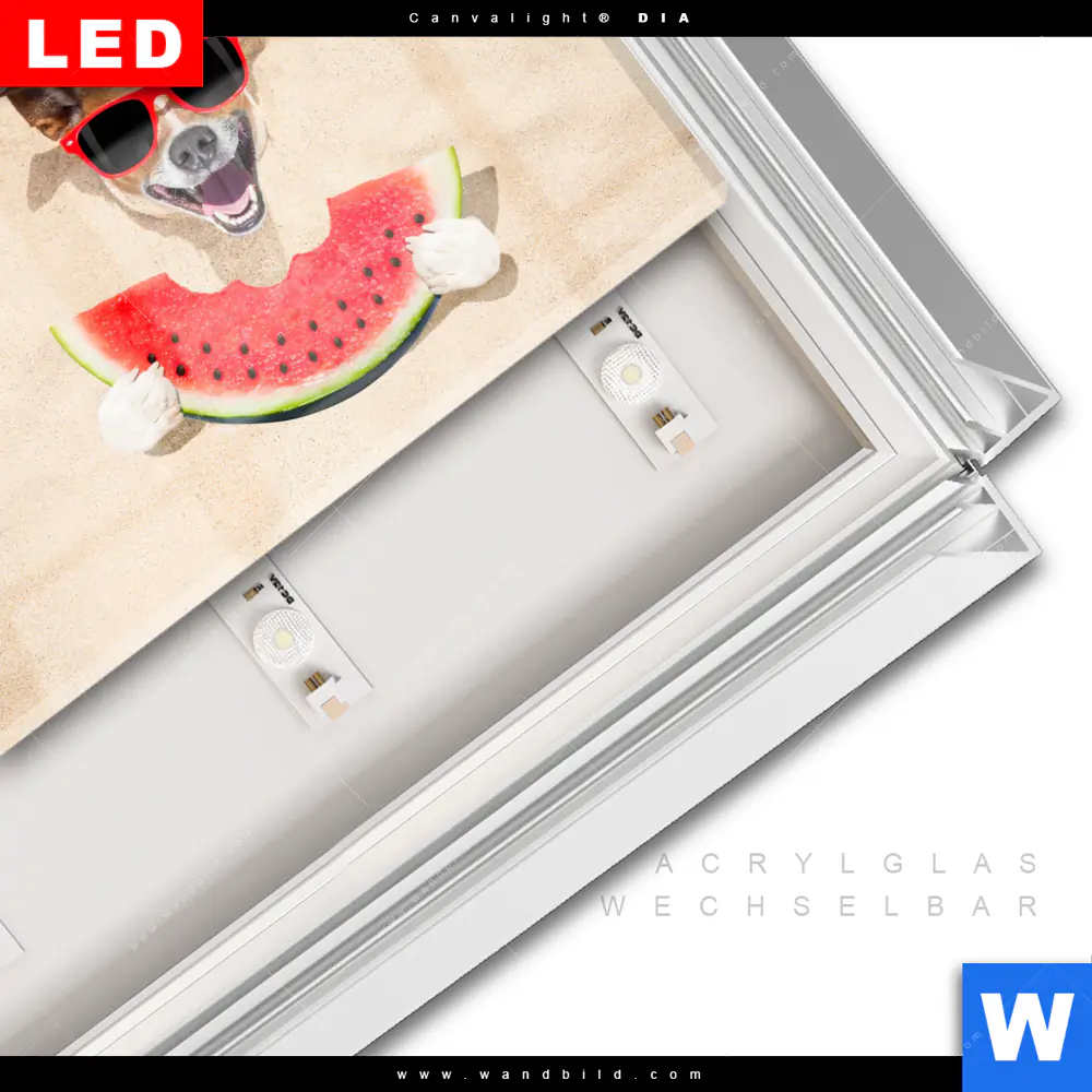 LED-Glasbild mit austauschbarem Acrylglas-Druck (Wechselbild)