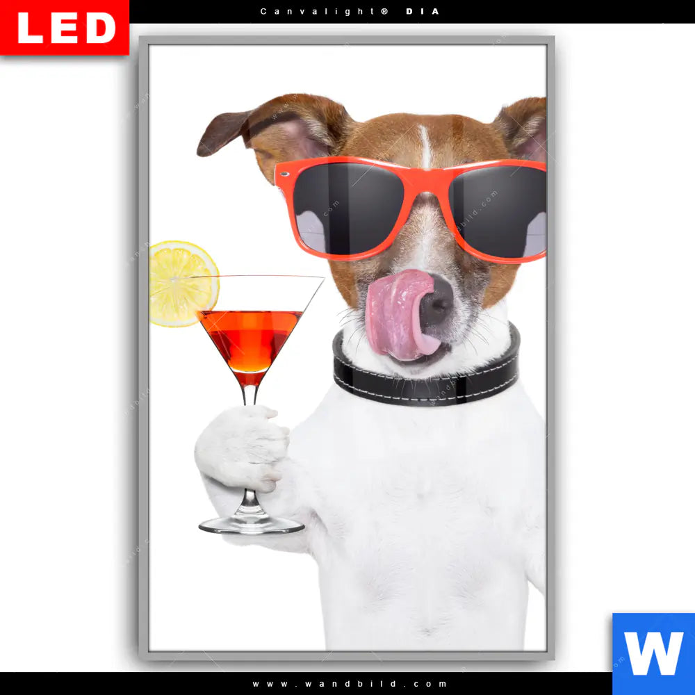 Canvalight® DIA Leuchtbild | Lustiger Hund mit Drink | Hochformat