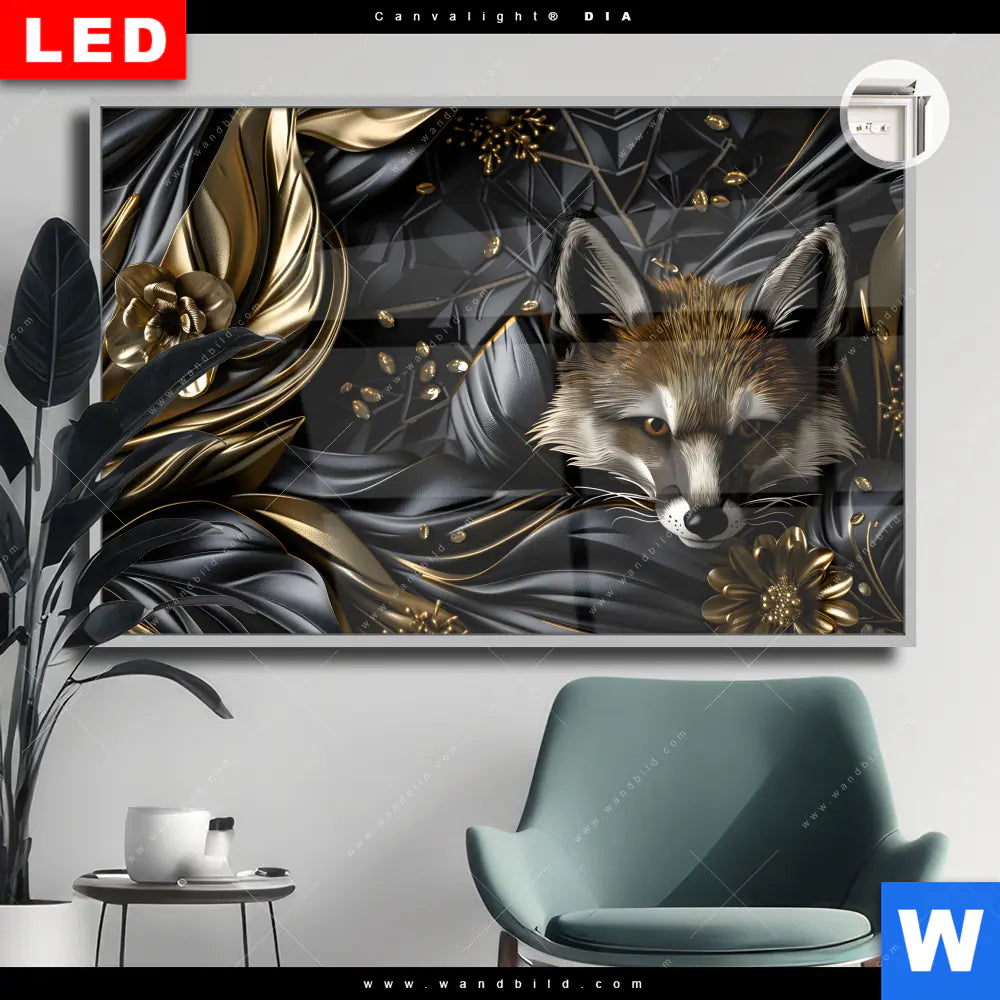 Canvalight® DIA Leuchtbild | Luxuriöser Fuchs mit Blumen | Querformat
