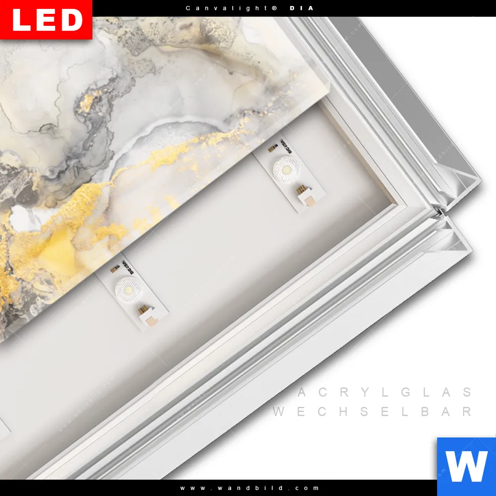 LED-Glasbild mit austauschbarem Acrylglas-Druck (Wechselbild)