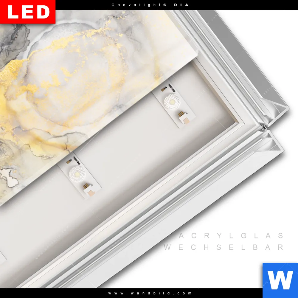 LED-Glasbild mit austauschbarem Acrylglas-Druck (Wechselbild)