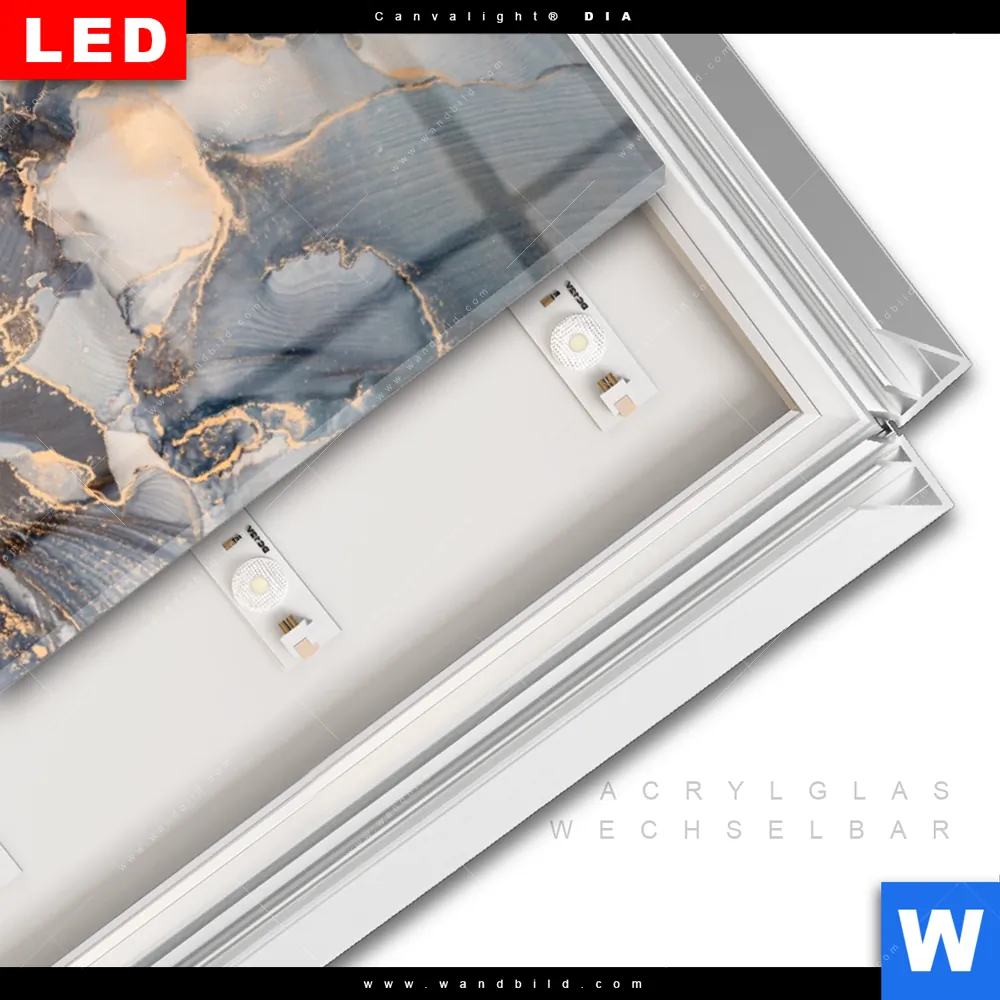 LED-Glasbild mit austauschbarem Acrylglas-Druck (Wechselbild)