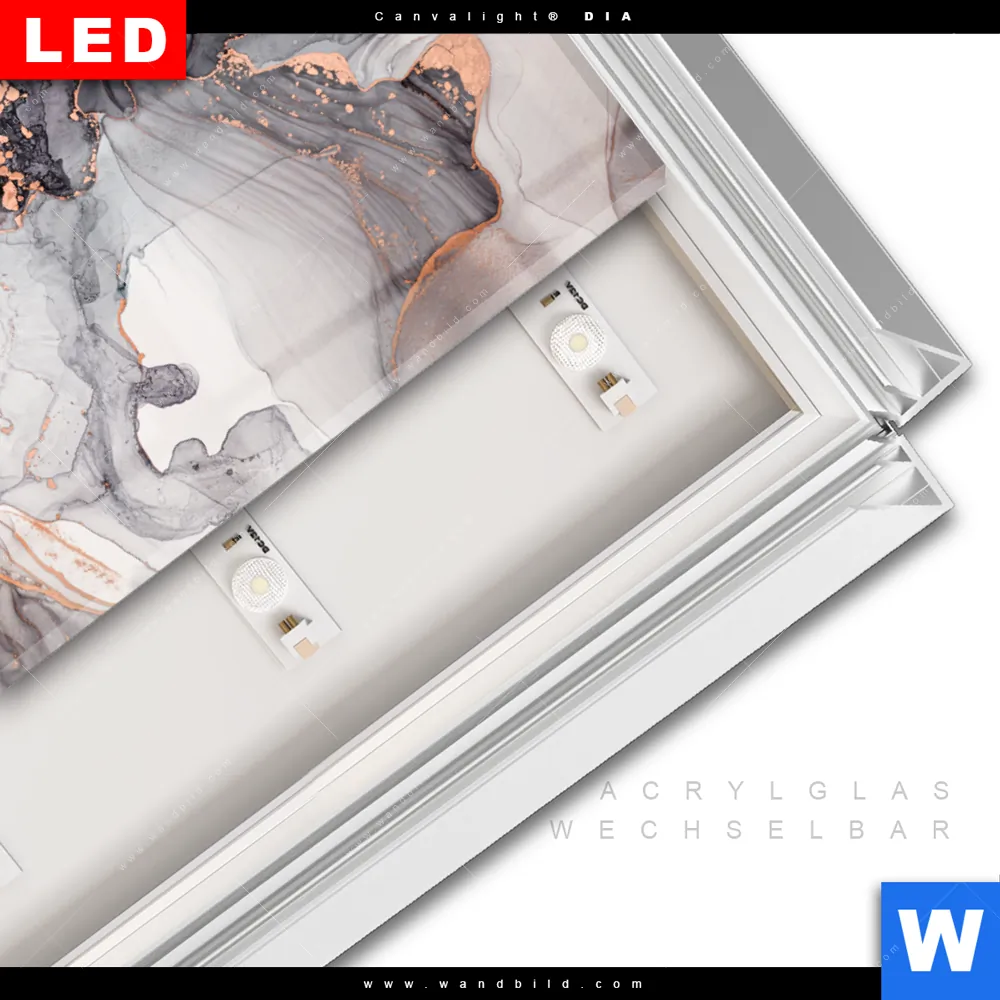 LED-Glasbild mit austauschbarem Acrylglas-Druck (Wechselbild)