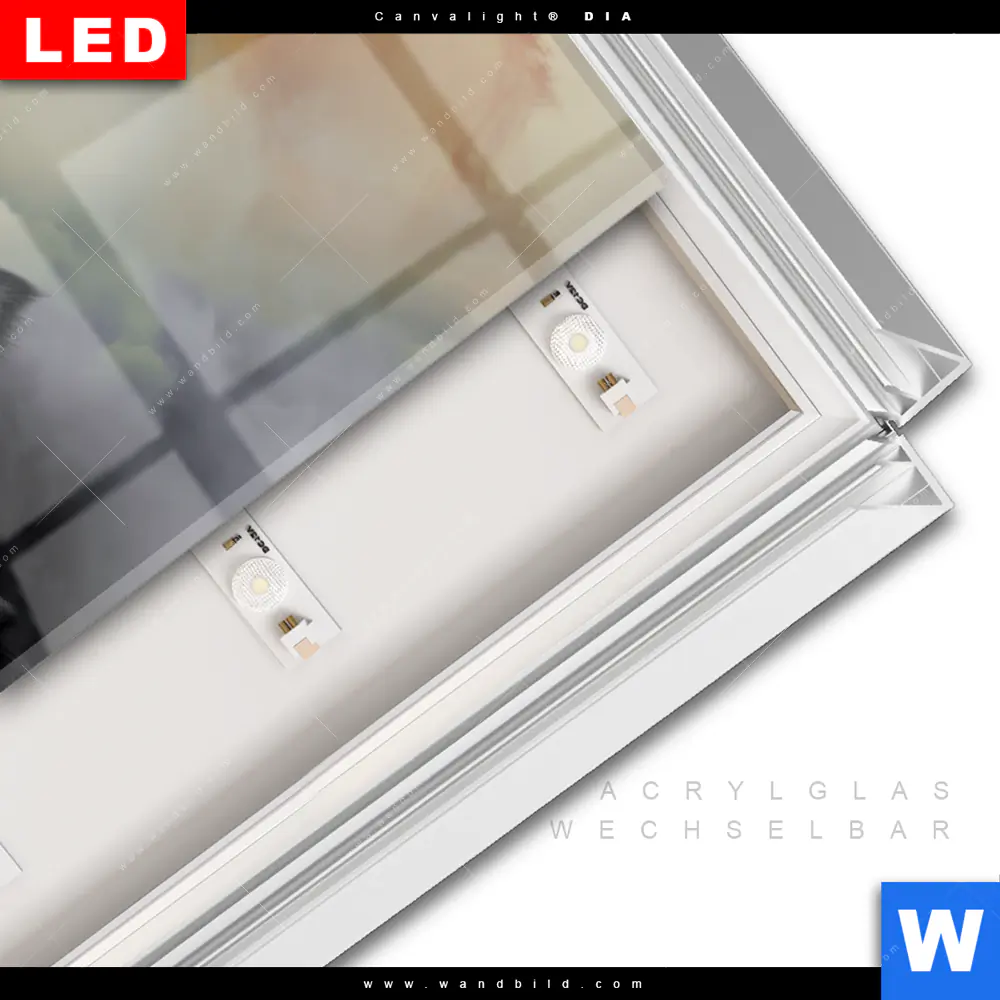LED-Glasbild mit austauschbarem Acrylglas-Druck (Wechselbild)
