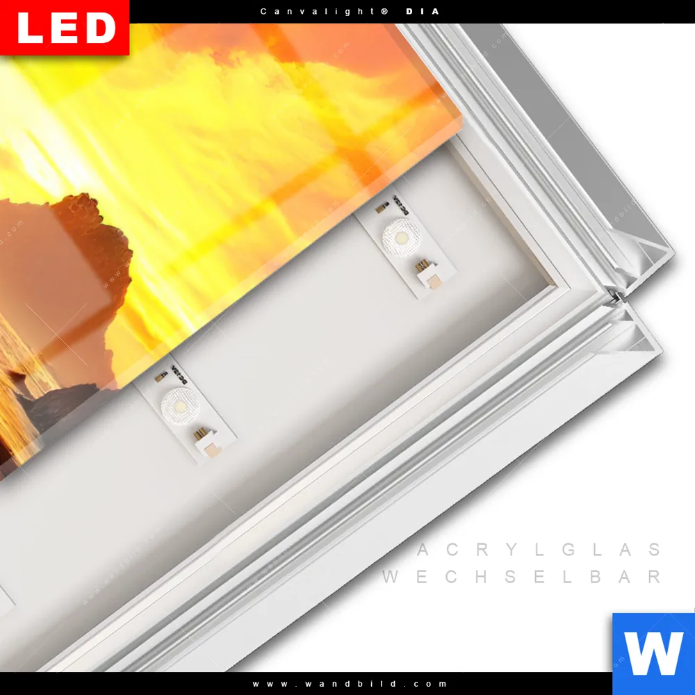 LED-Glasbild mit austauschbarem Acrylglas-Druck (Wechselbild)